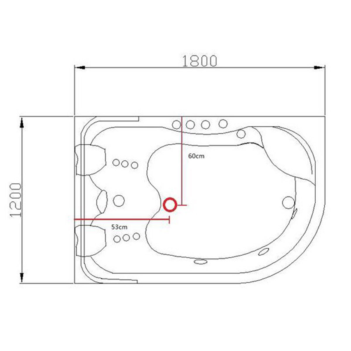 Indulge in a luxurious and rejuvenating bath with the 180×120 Whirlpool Acrylic Jacuzzi P40, where sophisticated design meets advanced whirlpool technology for the ultimate home spa experience.