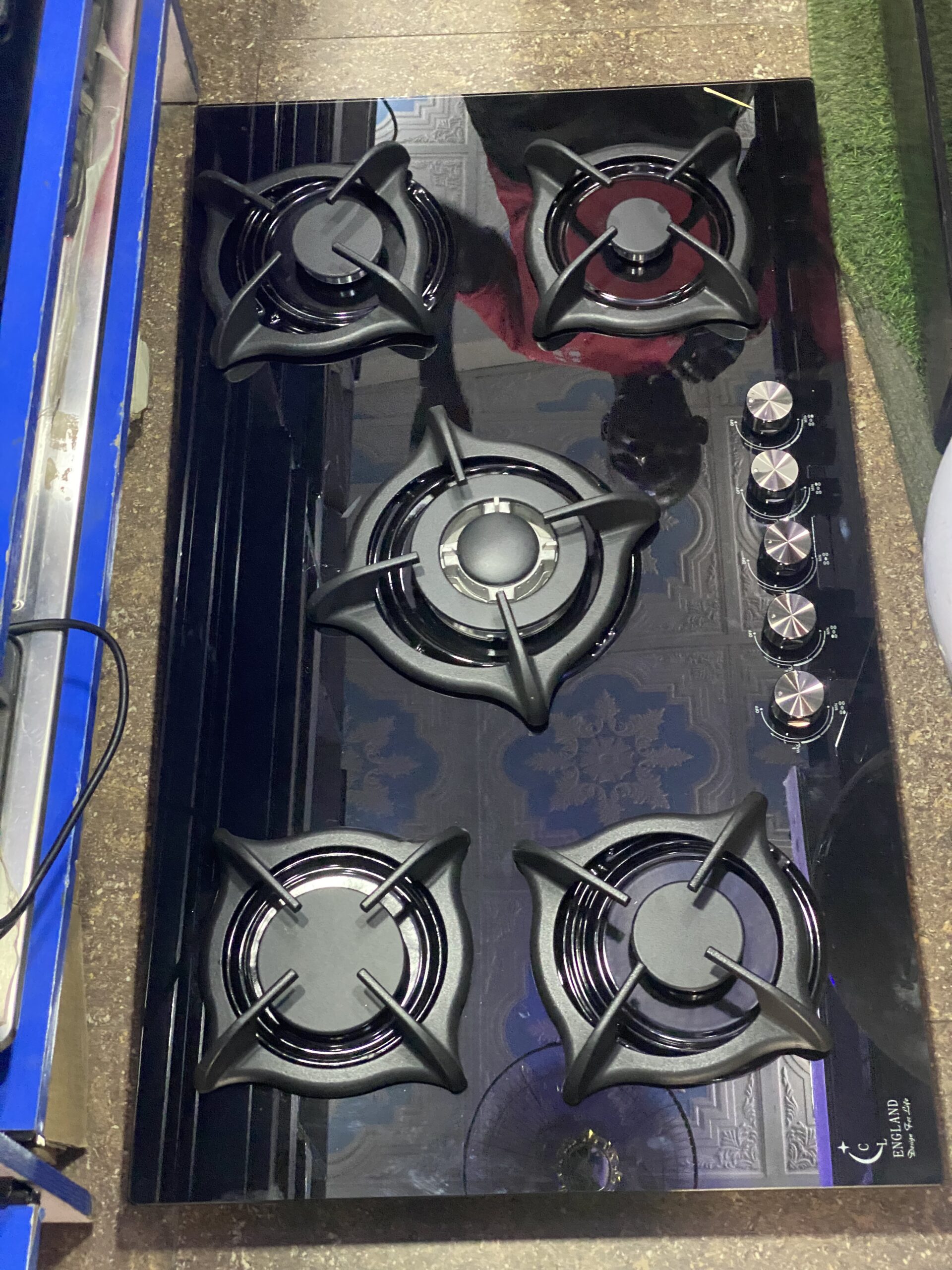 5 Burner Built-in Gas Hob with 8mm Tempered Glass Thickness and Auto Ignition