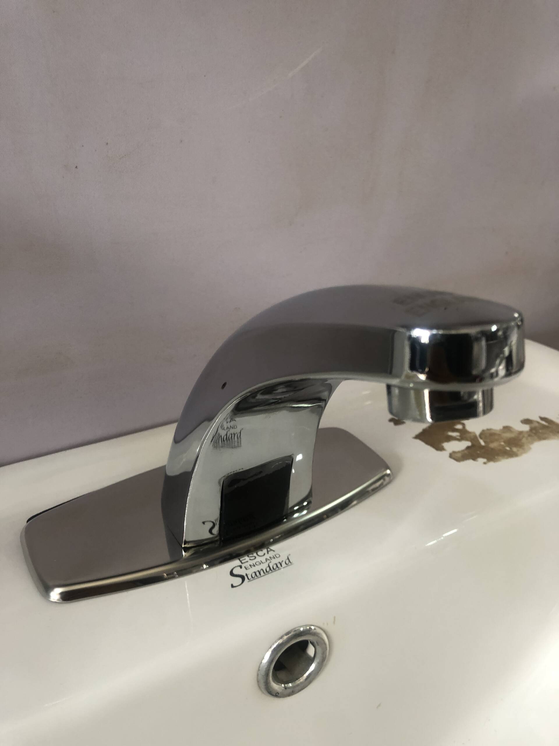 - Stainless steel elbow-style touchless sensor tap